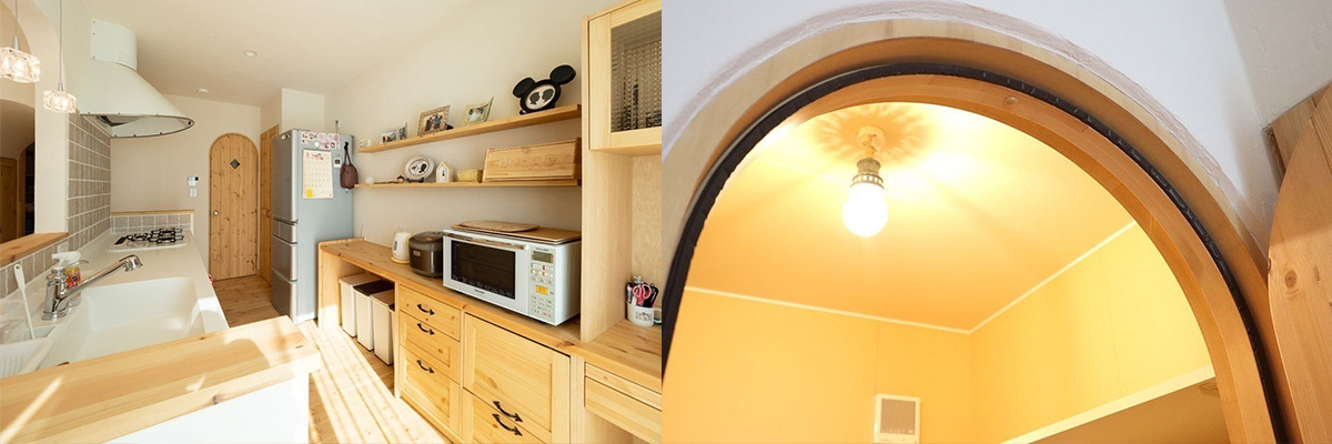 写真右は室内に冷気を漏らさぬようパッキン(黒いゴム)を使って遮断したパントリー。毎日癒される!大好きなカントリースタイルの可愛い我が家 帯広市Hさん カントリーヴィレッジ