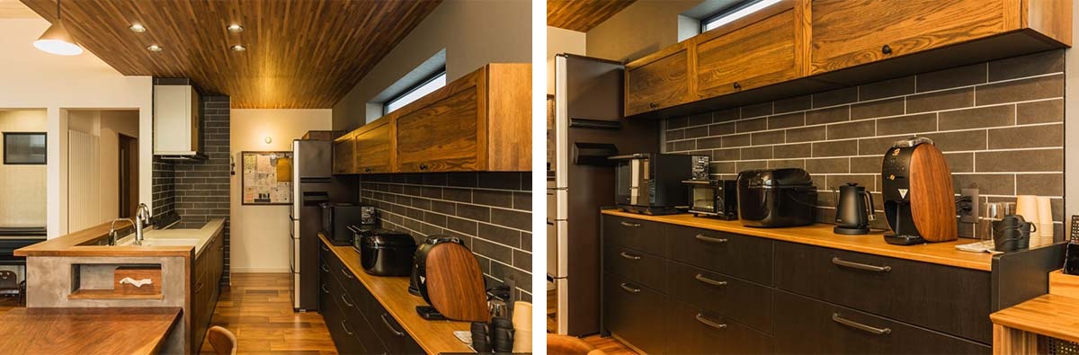 「海外ドラマの影響もあり、見た目が好きでこのスタイルを選びました。造作の食器棚も含め、収納力も抜群です」