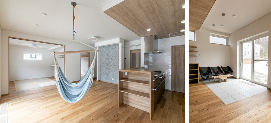 アウトドア気分を味わえる窓辺のハンモック 札幌市Oさん/晃和住宅