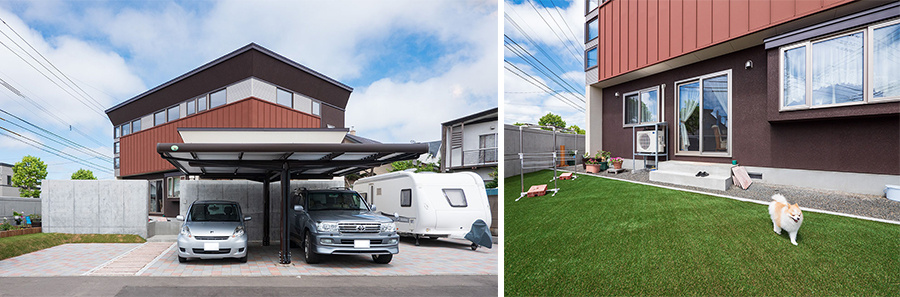 Tさんご夫妻は、アウトドアが大好き。週末は犬を連れて湖へ。キャンピングトレーラーに犬と滞在しながら、ボート遊びや仲間とのバーベキューなど、オフタイムを満喫しています。そんな楽しみを支えているのが、札幌市内の住宅地に完成した新居です。