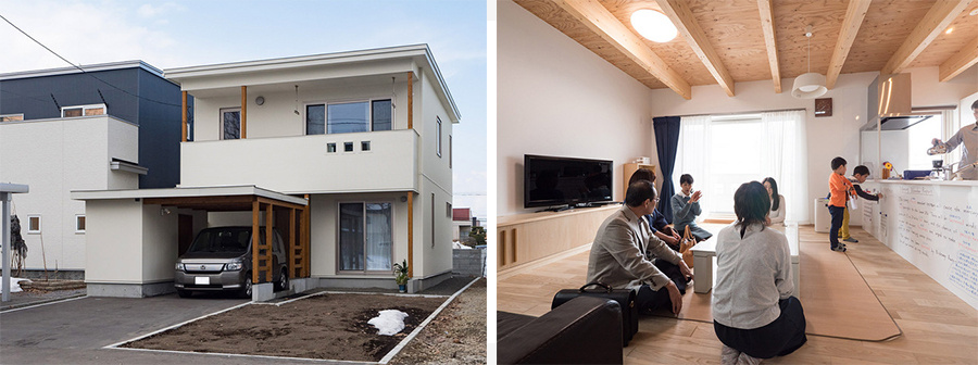 記事はこちら ガルバリウムと道南杉でシャープな外観~木の香りと家族の笑顔が溢れる小樽の家