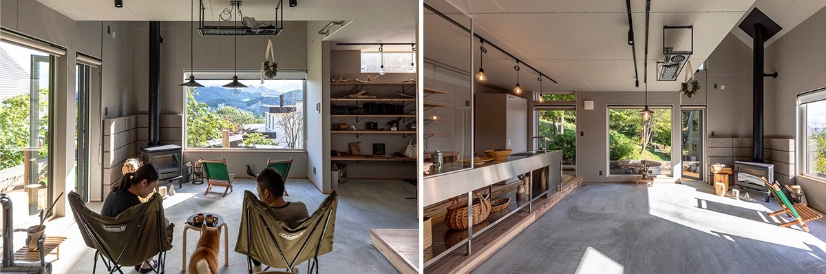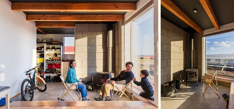 屋外キャンプの感覚で過ごせる土間仕上げリビング 札幌市Oさん/シノザキ建築事務所