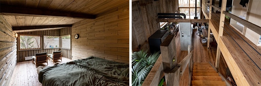 記事はこちら 室内は山小屋風コテージの自由空間。暖房は薪ストーブ1台でほっこりと過ごす家 シノザキ建築事務所