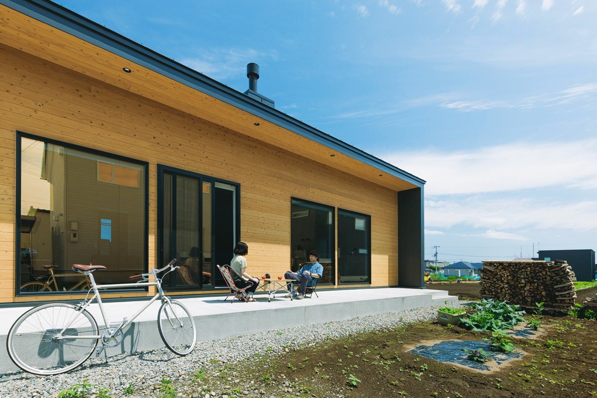 芽室町内の静かな住宅街。建物の南面いっぱいに13.65メートルのテラスが広がる平屋住宅に暮らすのは、ご夫婦そろってアウトドア好きというSさんです。
