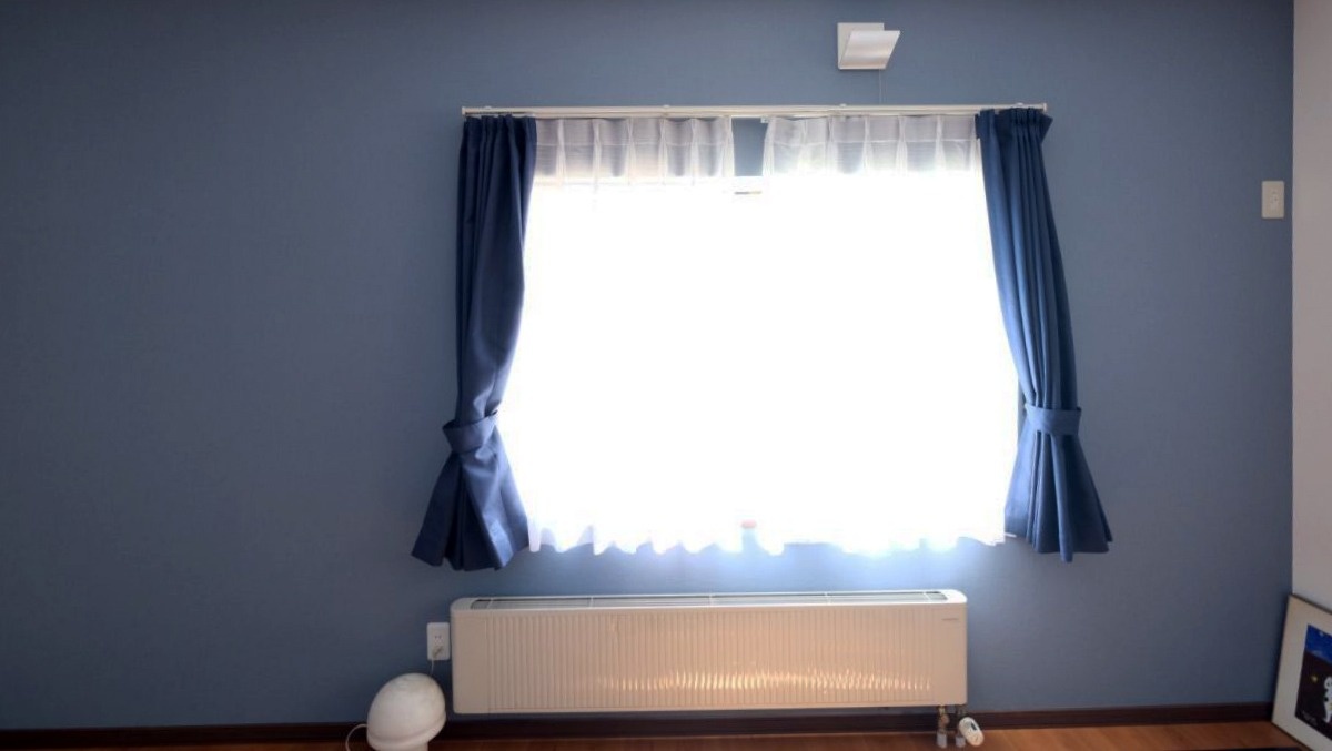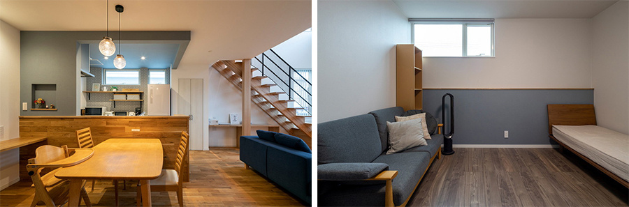 コロナ禍でテレワーク中心の生活になったKさんは収納に使っていた1階の和室をテレワーク用「自宅オフィス」に改修するとともに、寒さ対策で快適な「おうち時間」を過ごせる環境を整えることを決意。奥にあった押し入れと仏間を取り払い、すっきりとした広い洋室になりました。ブルーグレーのクロスがアクセントです。