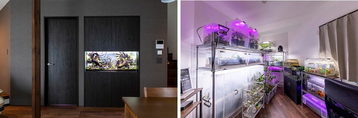 アクアリウムの裏にある熱帯植物やカメを飼育する趣味の部屋 岩見沢市F邸/拓友建設