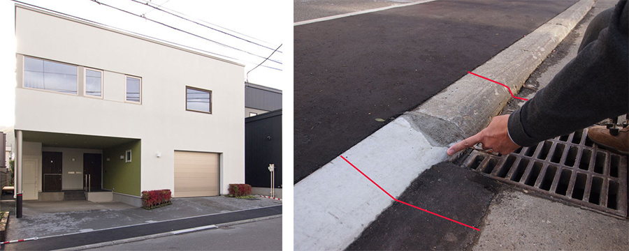 さらに、道路と縁石の段差も解消しました。山下さんは市とかけあい、この縁石の高さを2cmまで低くする許可をもらいました。さらに、微妙なつっかかりを防ぐためにアスファルト舗装でその2cmの段差も解消しました。