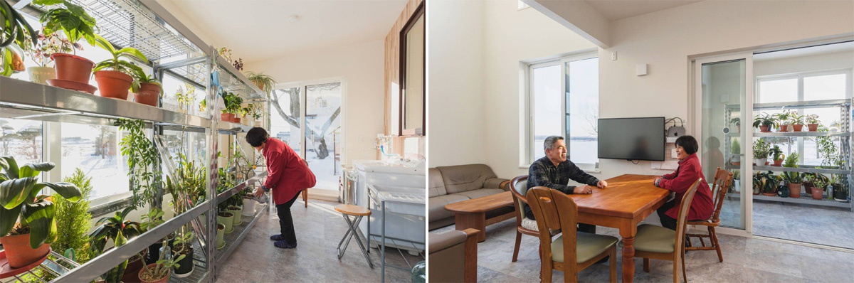 LDKに隣接する温室 音更町山川邸/赤坂建設