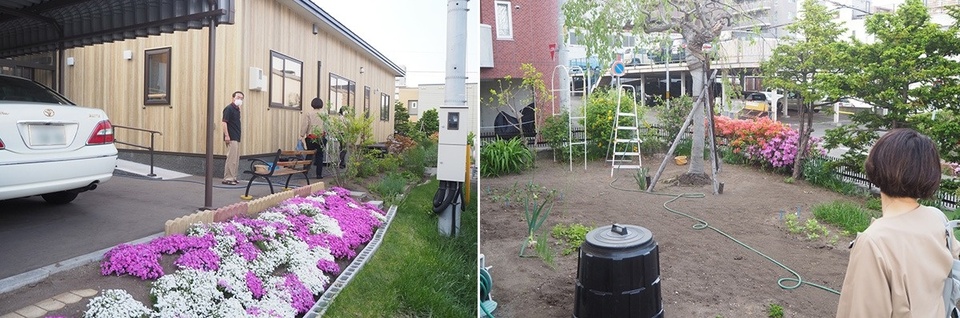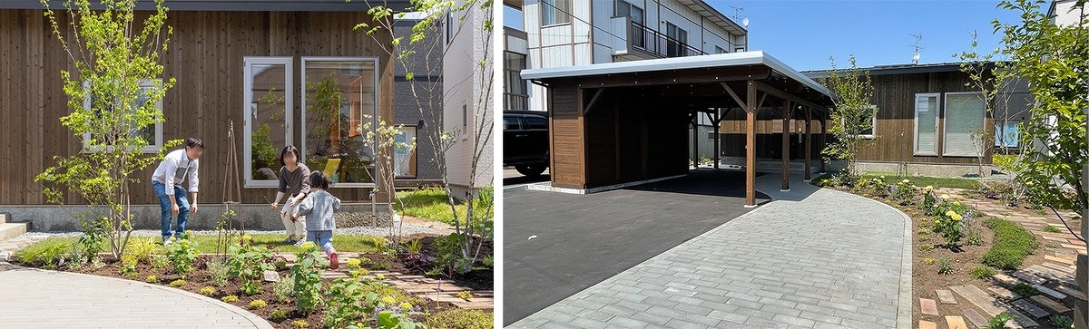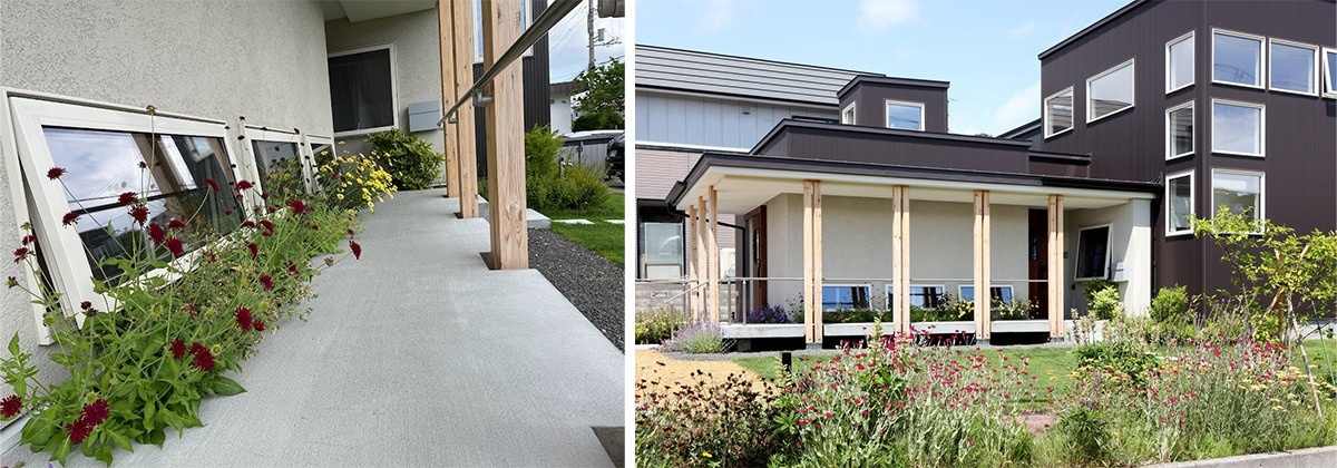 カーポートの横や裏庭でガーデニングを楽しむ 札幌市東区/白田建築事務所