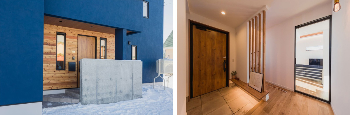 外観とインテリアを統一 こだわりのカラーコーディネートの玄関 帯広市・K邸/Cryptn(クリプトン)