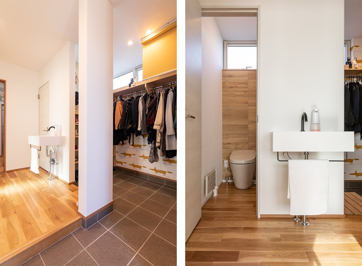 玄関にクローゼットと手洗いを付けて、外と内を分ける境界に 東神楽町 Tさん/昭和木材