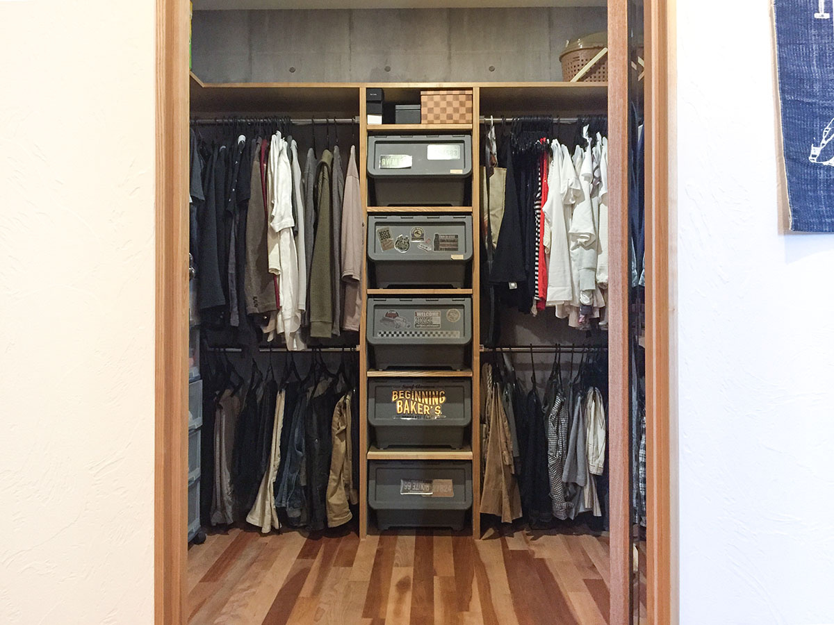 スッキリと片付いたクロゼット。好きなものを厳選し、丁寧に使って暮らす奥さまのライフスタイルが反映されています。