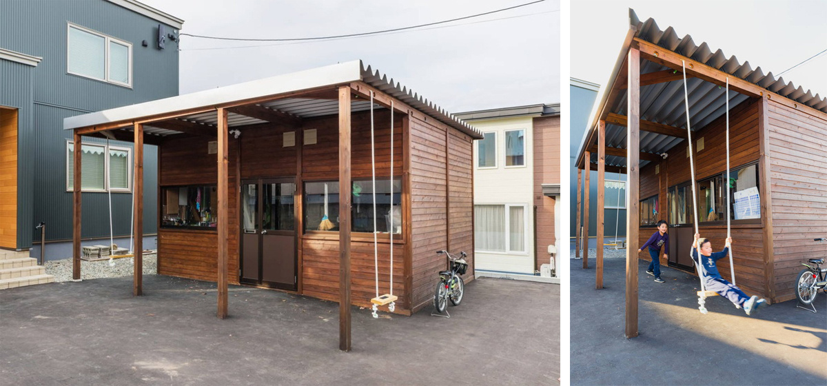 入居後、ご主人の手でブランコが付いた山小屋みたいな物置が建てられました。「仕事の合間に作業しているのでまだ完成していない」そうですが、DIYとは思えないクオリティ。お子さんたちもこのブランコがお気に入りです。敷地の中には家庭菜園もあり、ご夫婦で野菜づくりを楽しんでいます。