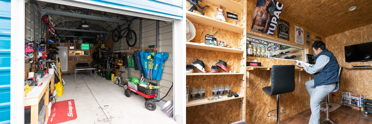 ガレージ内部に、木造で小屋を作ったのです。好きなスポーツのグッズなども並ぶお気に入りの空間です。