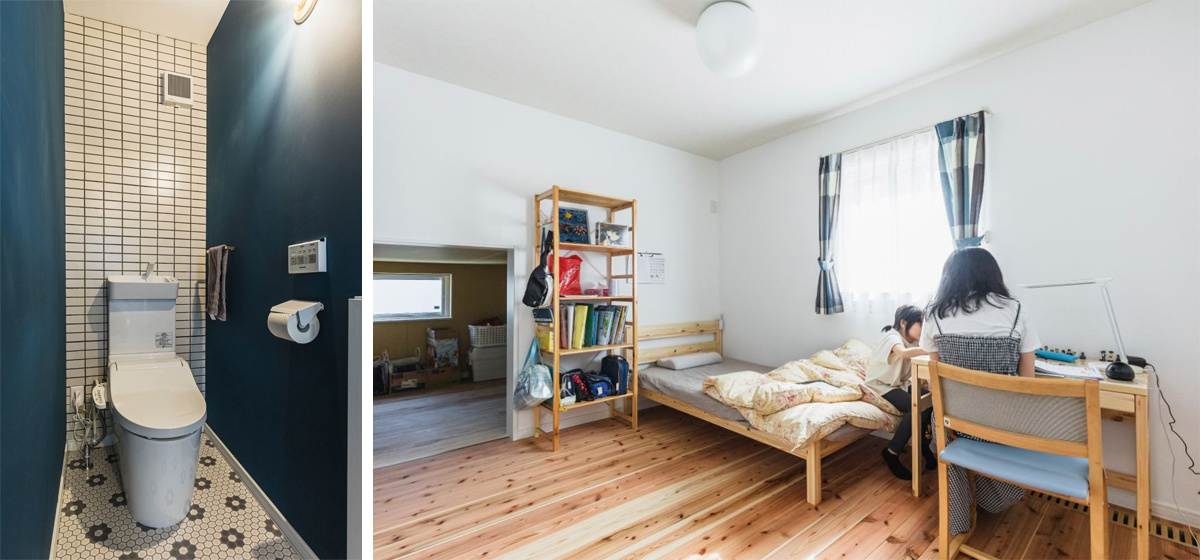 トイレではタイル貼りにも挑戦。youtubeの動画を参考にして貼ったという壁は素人とは思えない仕上がりです。