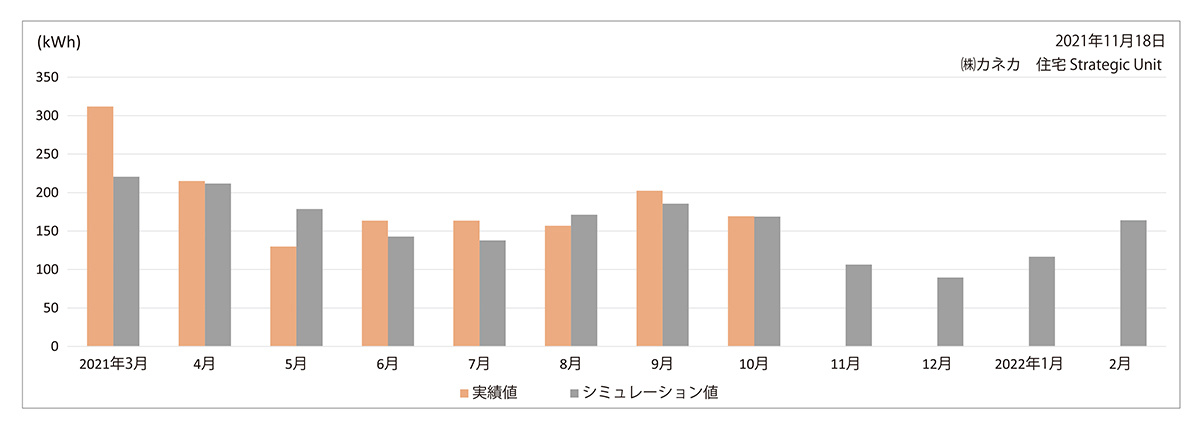 沼田町住宅 カネカ太陽光発電(壁面設置容量3.3kW)発電量実績