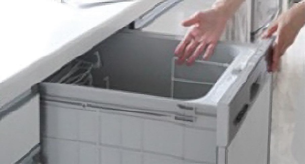 食洗機を利用するときには、扉の前に位置するカウンターの引き出しやゴミ箱、冷蔵庫の引き出しなどとぶつからないか、暮らしを想像してみることも大切です。