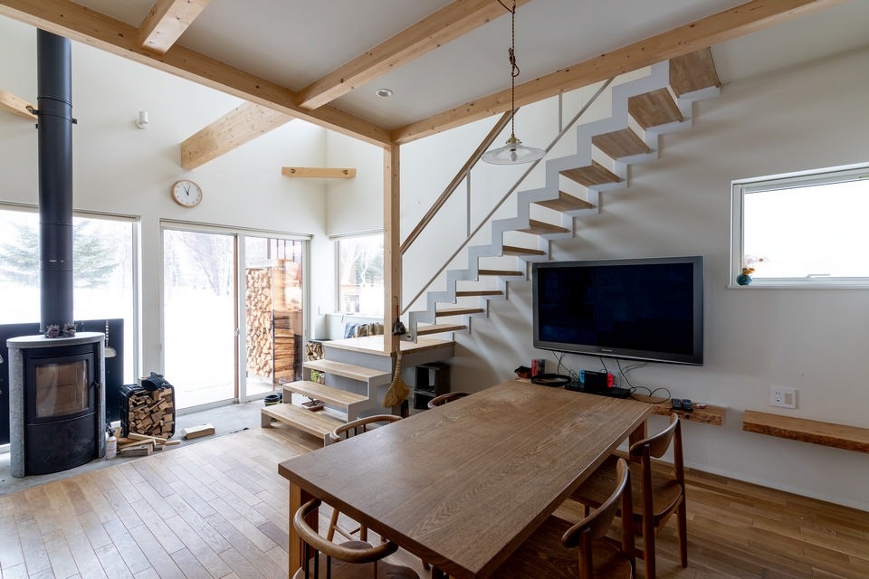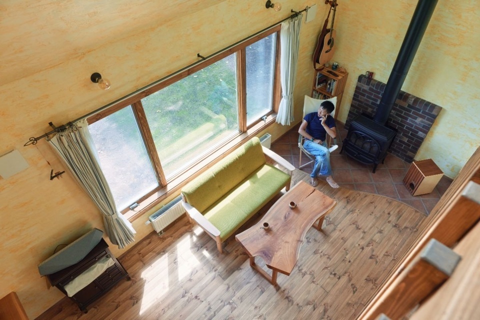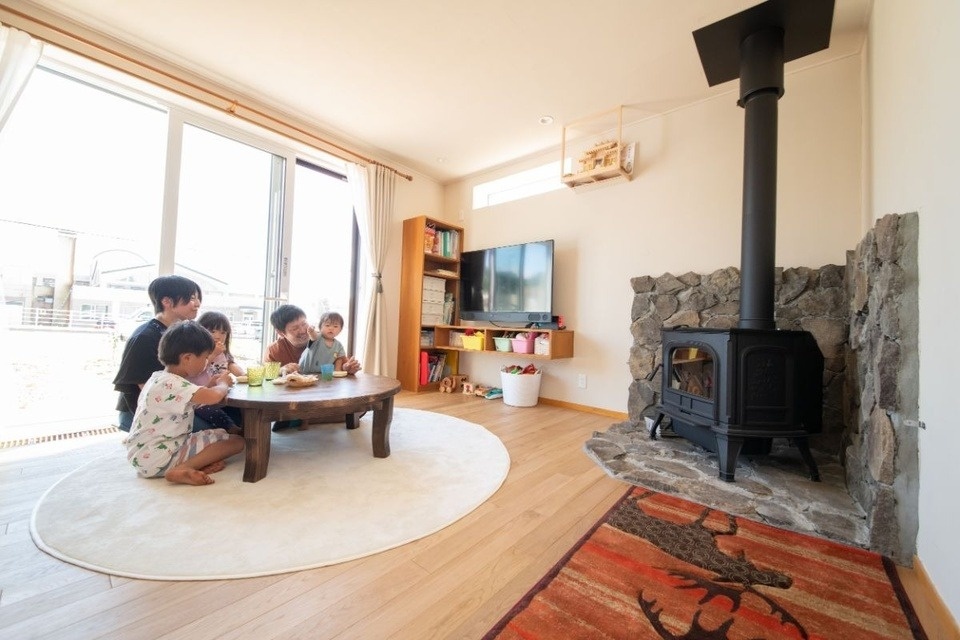・薪ストーブやペレットストーブを囲んで寛ぐリビング