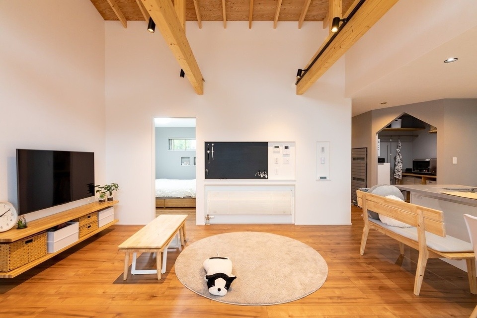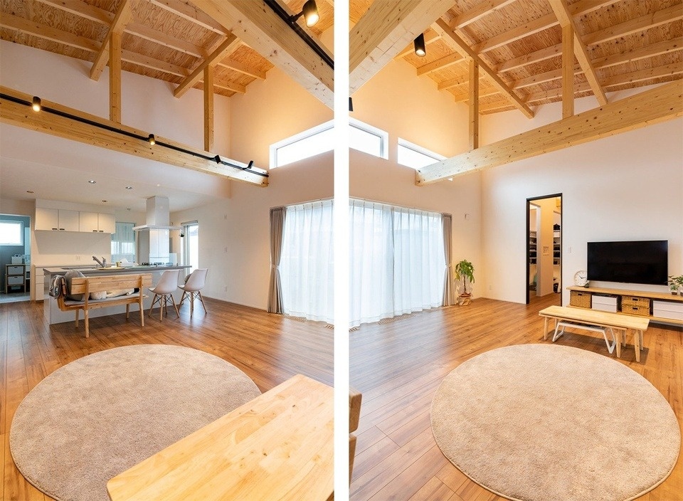 広々としたリビングは、吹抜けのような大空間にしているのがポイント。平屋ながら開放感あふれた住み心地を感じられるのが嬉しいですね。
