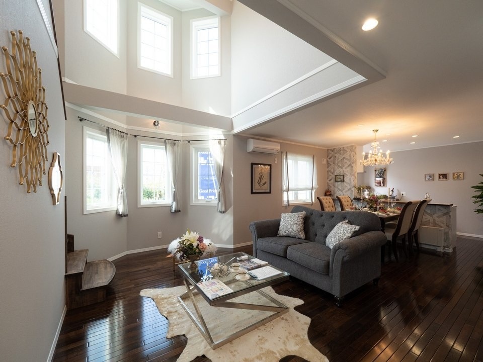 天井は高さ3m、面積は約30畳という広さのLDK 帯広市K邸/イゼンホーム