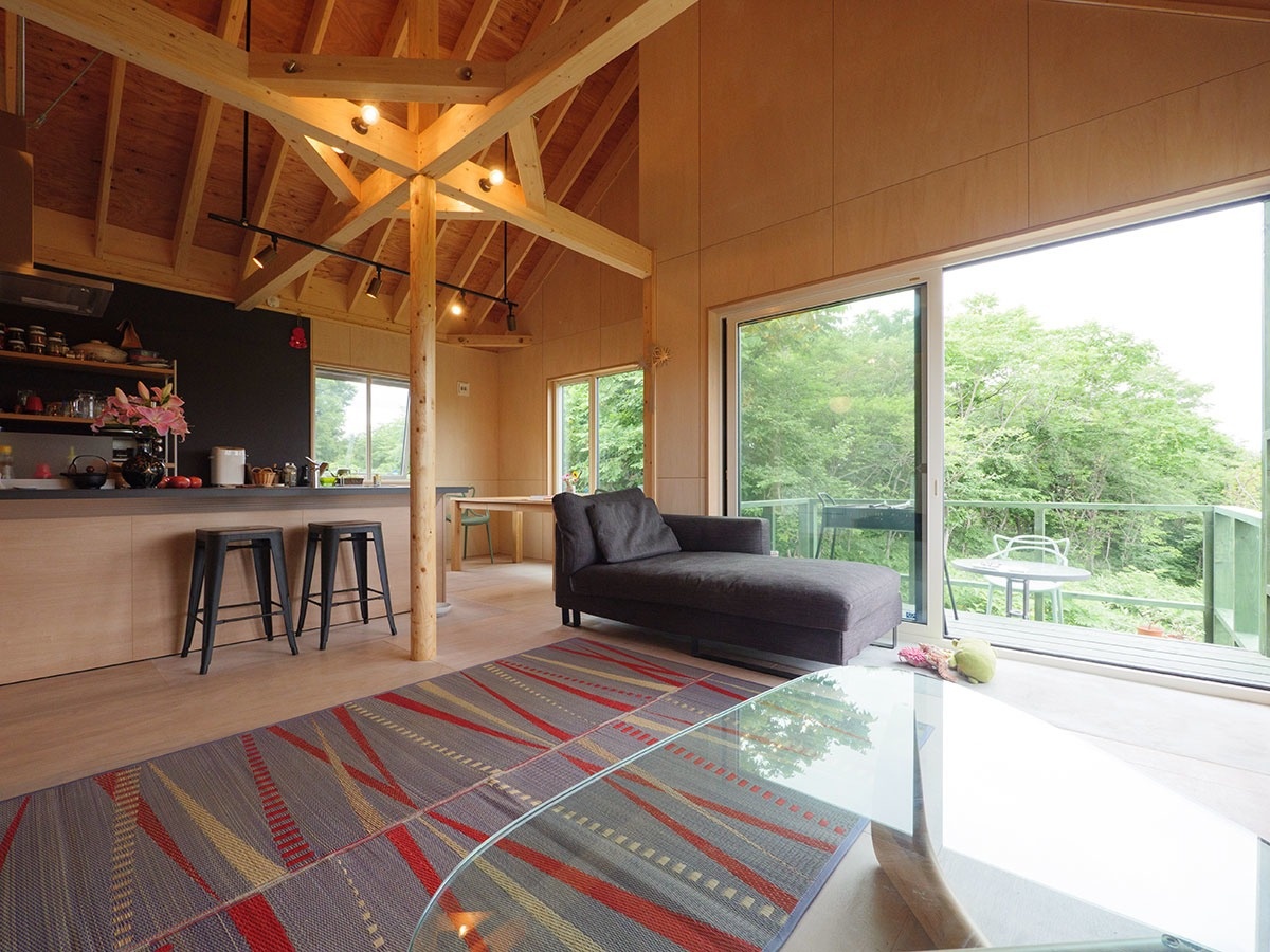 非日常感を味わえるお宿のリビングダイニング 上士幌町「咲色~sairo~」/cubeチセ