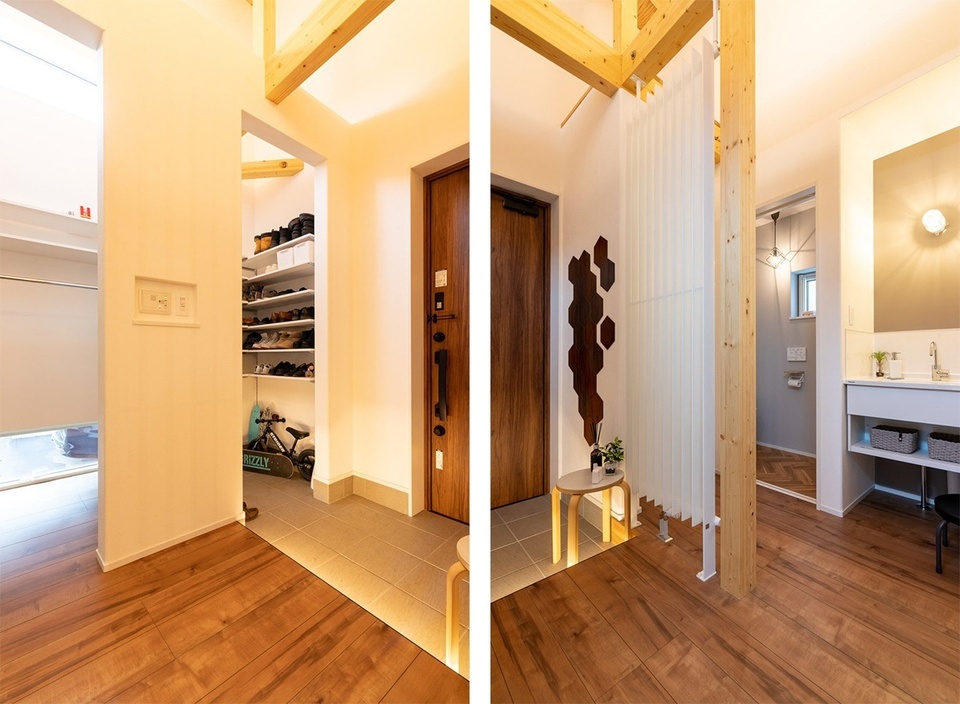 玄関まわりの収納や手洗いの設置なども、ママの声が多く反映されています。