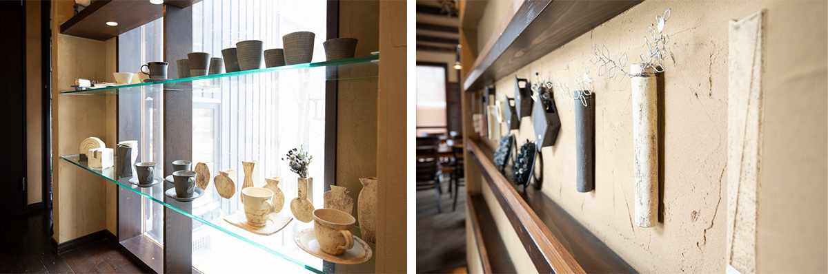 土間を少し拡張して、絵里子さんの作品を置くショールームを作りたいと要望しました。外からも覗ける展示スペースは、将来ショップとして活用できそうな広さです。