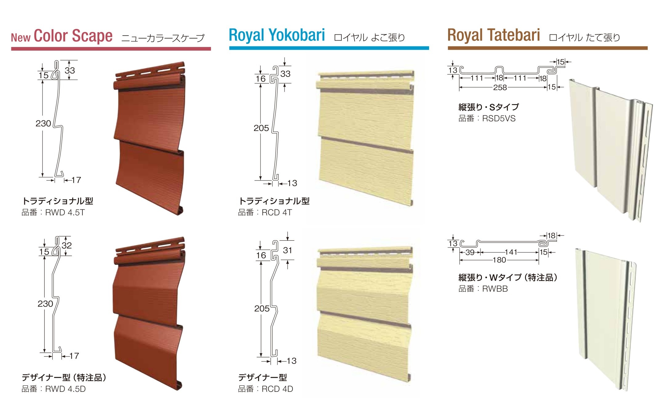 樹脂サイディングの形状。他のサイディングと比べて薄く、重量も軽い(ゼオン化成・『ゼオンサイディング』のカタログより)