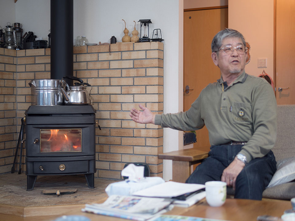 大変な作業ですが冬を快適に過ごすためには欠かせない仕事で、「薪割り機も貸してくれる方がいるし、辻野社長も毎年声をかけてくれるの。住み始めてから20年近く経つけど、今でも大満足。何かあると担当の中野さんがすぐに対応してくれるから安心なの。いつも気にかけてくれて、ありがたいですよ」と奥さま。