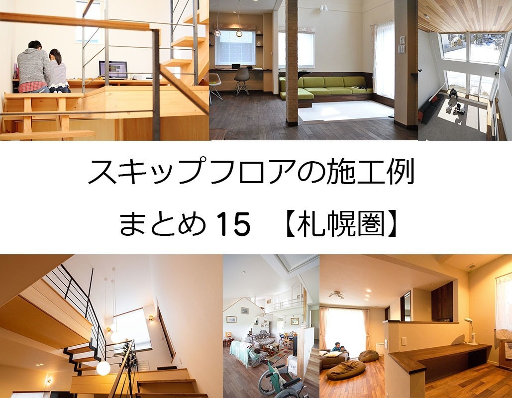 スキップフロアで1階、中2階、2階といった立体的な階層をプランすると、例えば中2階に共有ホールを設ければ家族の団らんや勉強スペースになったり、そこに洗面スペースやトイレを設ければ、1階、2階のどちらからもアクセスしやすい空間になったりします。札幌圏でスキップフロアを採用された方のお話をまとめました。