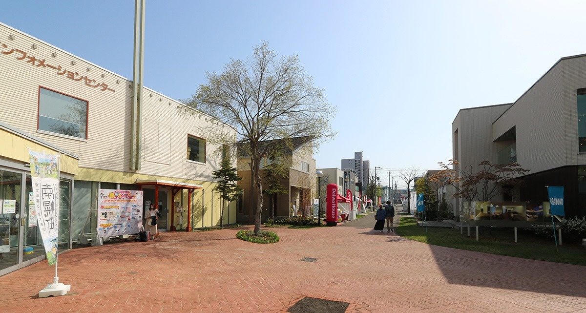 石狩街道から東16丁目・屯田通りを東方向に入ってすぐにある住宅展示場。比較的小規模なのでじっくりと一棟一棟見学するのもよさそう。