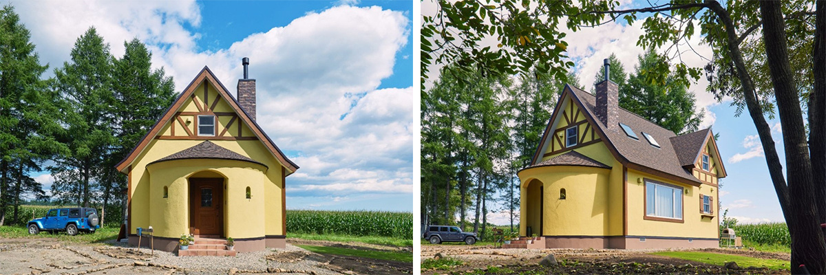 旭川の隣。東川町の農業地帯に、鉛筆のような?それともムーミンハウスのようにも見える塔の姿が印象的な注文住宅が2018年2月に完成しました。