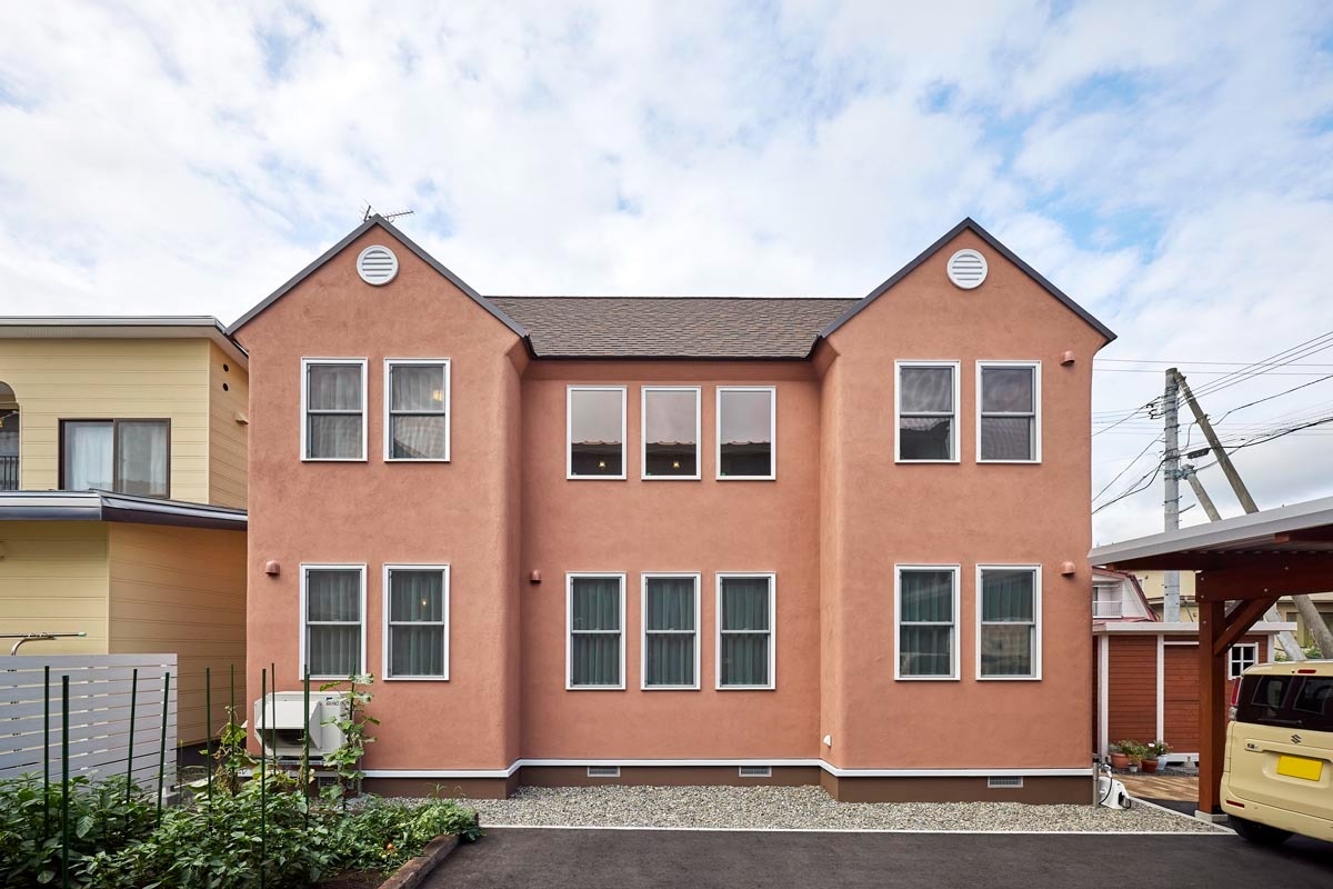 壁は温かみのあるテラコッタ色に。「定番のクリーム色や黄色などと違い、モデルとなる家がなかったので悩みましたが、時間帯や天気、見る角度による見え方の変化を想定して”これが正解”と思える色になりました」