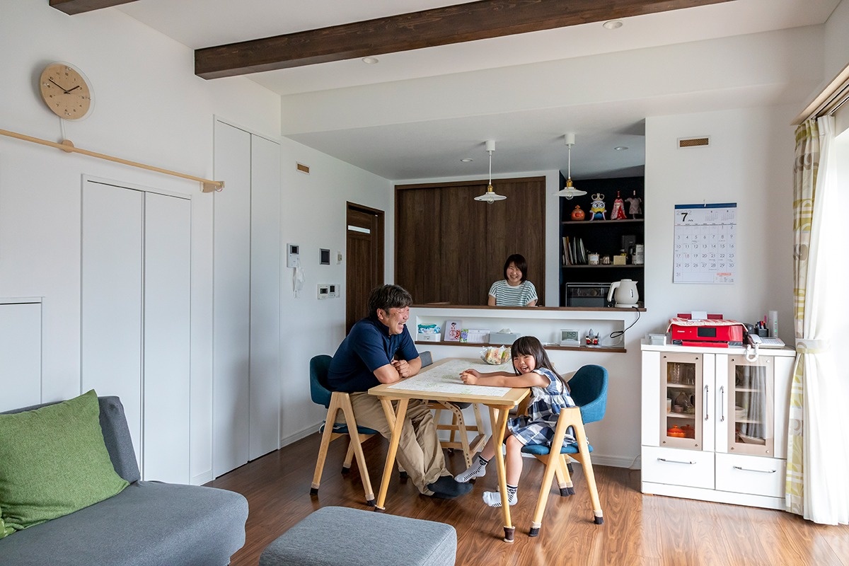 今年6月の入居後、初めての夏を過ごしたSさん一家。エアコンの操作をしなくても、どこの部屋も一定の温度で涼しく快適だったそう。また、朝晩は肌寒くなる取材に訪れた10月下旬でも「半袖で過ごせるぐらい暖かいんです」(奥さま)と高断熱・高気密の住宅性能の良さを実感中です。