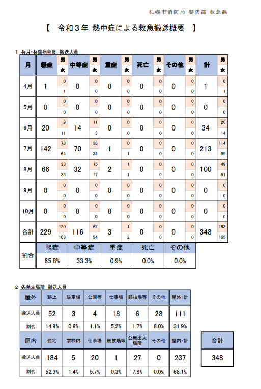 【出典:札幌市消防局 令和3年 熱中症による救急搬送概要より https://www.city.sapporo.jp/shobo/kyukyu/nettyuushou/documents/r3kakutei.pdf】