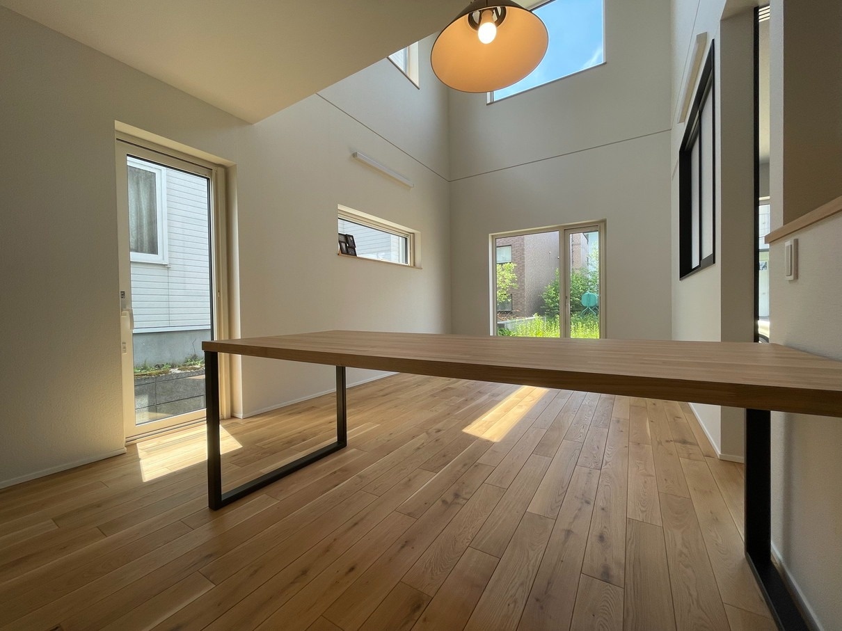 冷暖房の循環にも優れた吹抜けのリビング 東川町M邸/藤井光雄工務店