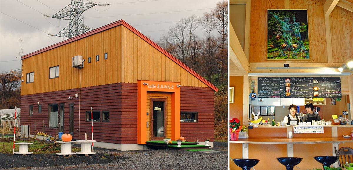 小樽中心部から道道956号沿いの峠道に入っていくと、やがて右側に明るい木造の建物が見えます。こちらが今回取材させていただく「Caffe えれめんと」。
