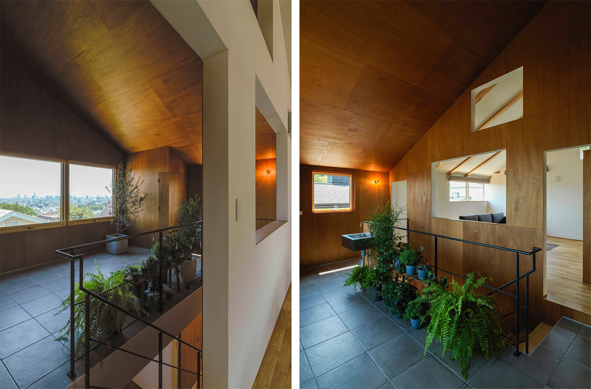 「この眺望を楽しむために、LDKを2階につくるのは最初から決まりでした。でも、よくあるひと続きのLDKならつまらない。そこで、この一番のビューポイントを外と中をつなげるサンルームにする提案です」