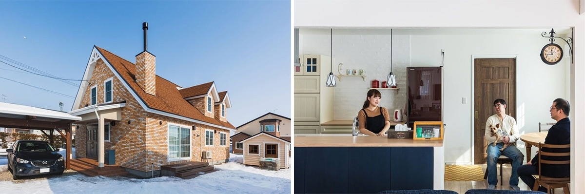 三角屋根を希望したのはご主人。「スタジオジブリのアニメ『魔女の宅急便』に出てくるシンプルで洋風な三角屋根の家に憧れていたんです。朝日社長は10寸勾配(45度)の三角屋根に薪ストーブの煙突やドーマ―(屋根窓)、外壁の色合いなども含めて洋風の外観になるように提案してくれました」