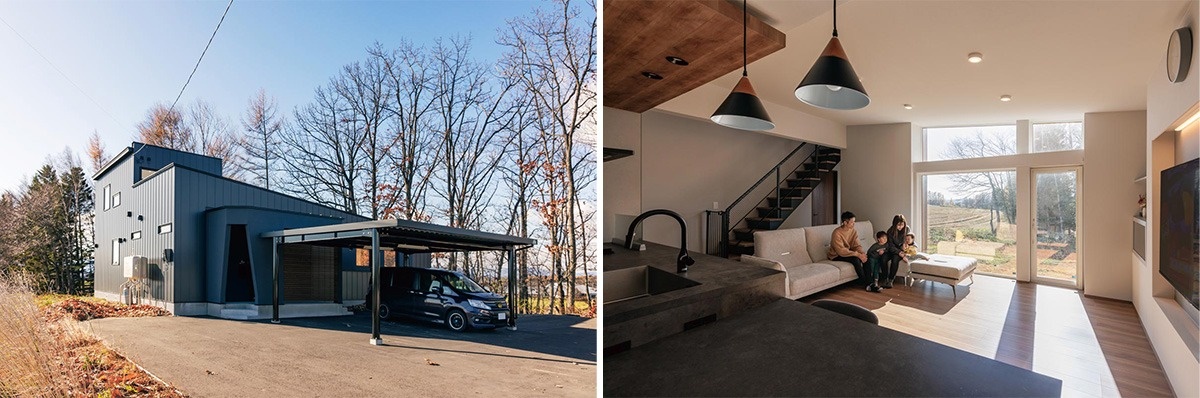 鹿追町の市街地を離れ畑の中を進むと、林を背に建つ一軒の家が見えてきます。建主のNさんは4人家族。広々とした自然の中で子育てをしたいとこの場所を選びました。