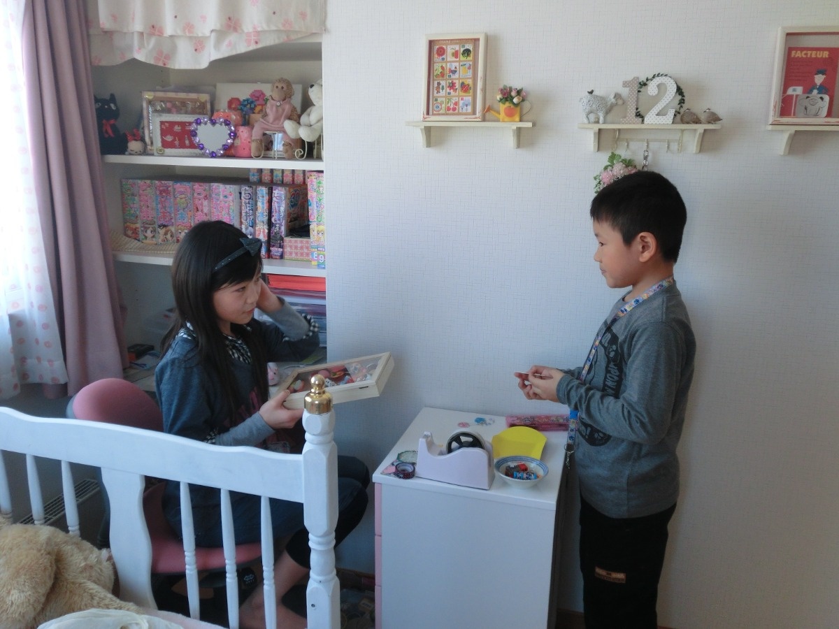 部屋にあるものをありったけ並べて、お店屋さんごっこもよくしました。分類分けする能力と、お店屋さん・お客さんとしての会話力、計算力が身につきます(笑)