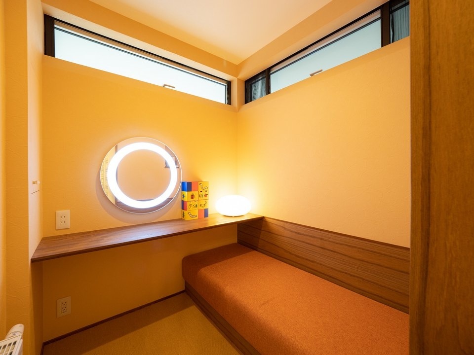 浴室横に設けられたこちらの空間も奥さまの希望を叶えた特別な空間。入浴後のボディ・ケアや、火照りを冷ます休憩スペースとしてつくられたもので、まさにホテルのような空間設計になっています。お子さんの誕生後は、赤ちゃんの湯上がりケアにも重宝しそうです。