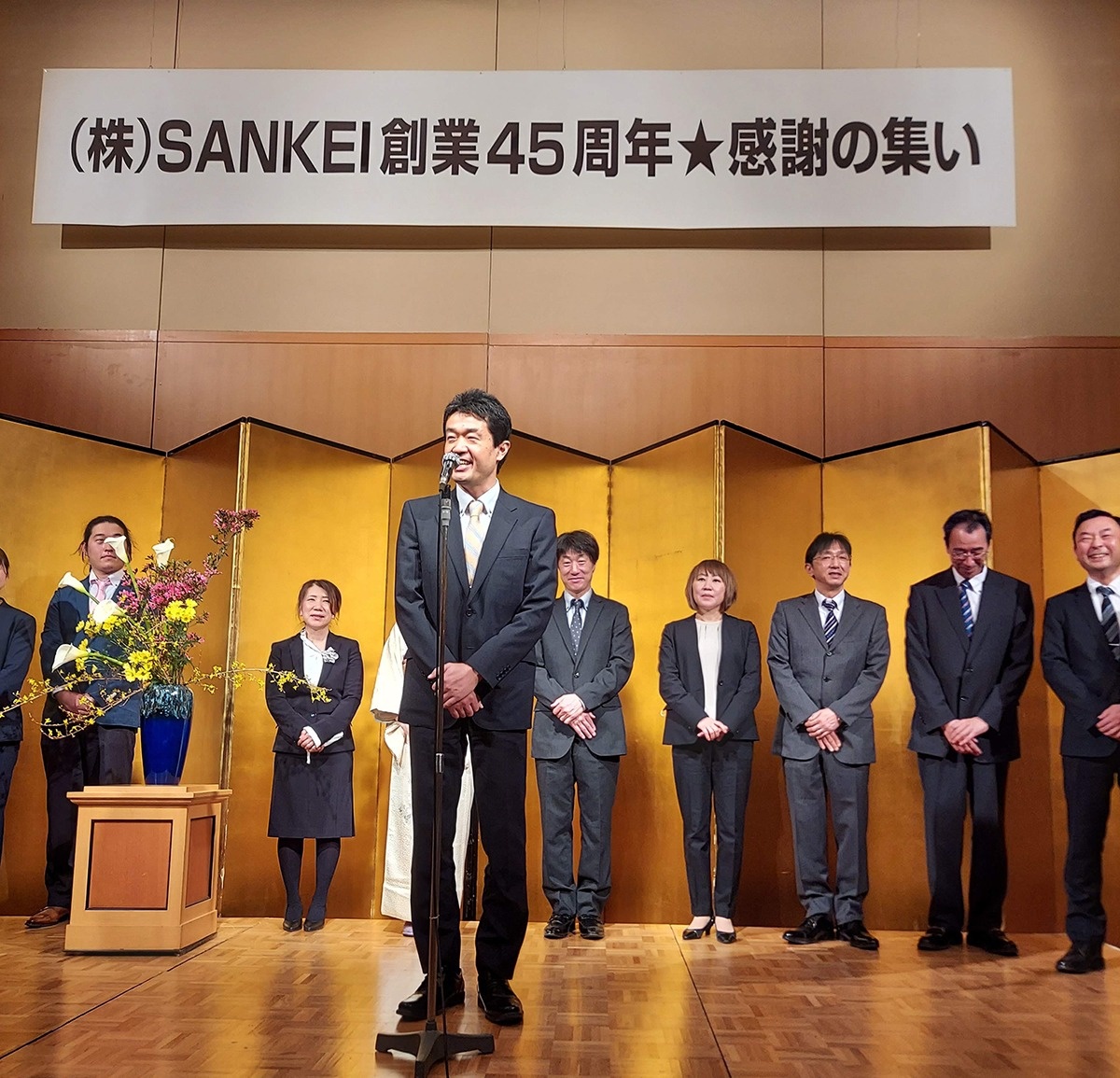 札幌の工務店で、新築・リフォームから不動産仲介等までワンストップでサービスを提供する株式会社SANKEIは去る3月25日、市内のホテルで創業45周年を記念する感謝の集いを開催した。会場には70名を超す招待客が、同社の歩みを祝った。