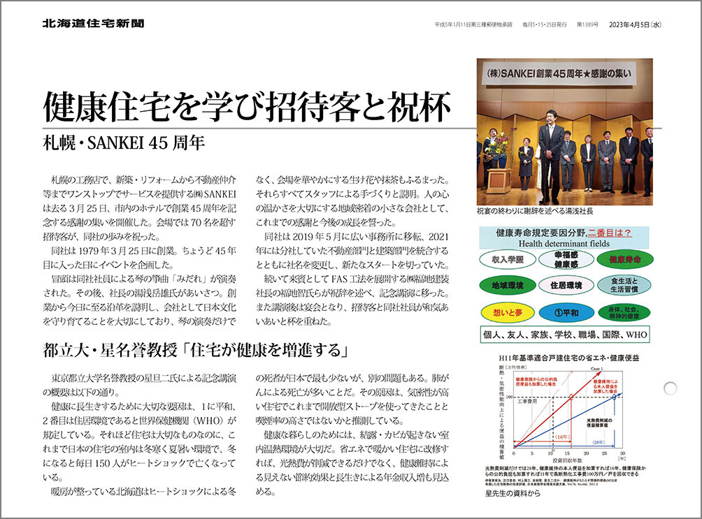 今回は2023年4月5日号10面から『暖かい住宅が健康維持のために大切』という記念講演をピックアップしてご紹介します。