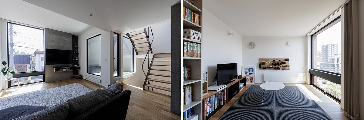 札幌市内の利便性の良い住宅地で「奥様同士がいとこ」という2組の家族が、同時に丸三ホクシン建設で3階建ての住まいづくりを実現させました。「同じ場所」「同じ時期」「同じ住宅会社」で完成した2つの家ですが、オーナーの住まいに対する思いが反映され特徴がガラッと異なります。