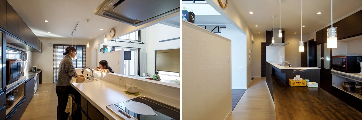 また、「男子厨房に入らず」と言われた時代ははるか昔のこと。共働きファミリーが増え、料理が得意な男性も多い時代です。夫婦で並んで、食育もかねてお子さんと一緒に、或いはお友達とパーティをしながら料理を楽しむなど、キッチンを中心にしたプランニングも人気です。