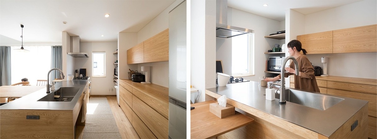 「動線が短く、すべてに手が届きます。道具の収納や掃除もしやすくとても重宝しています」(奥さん)。