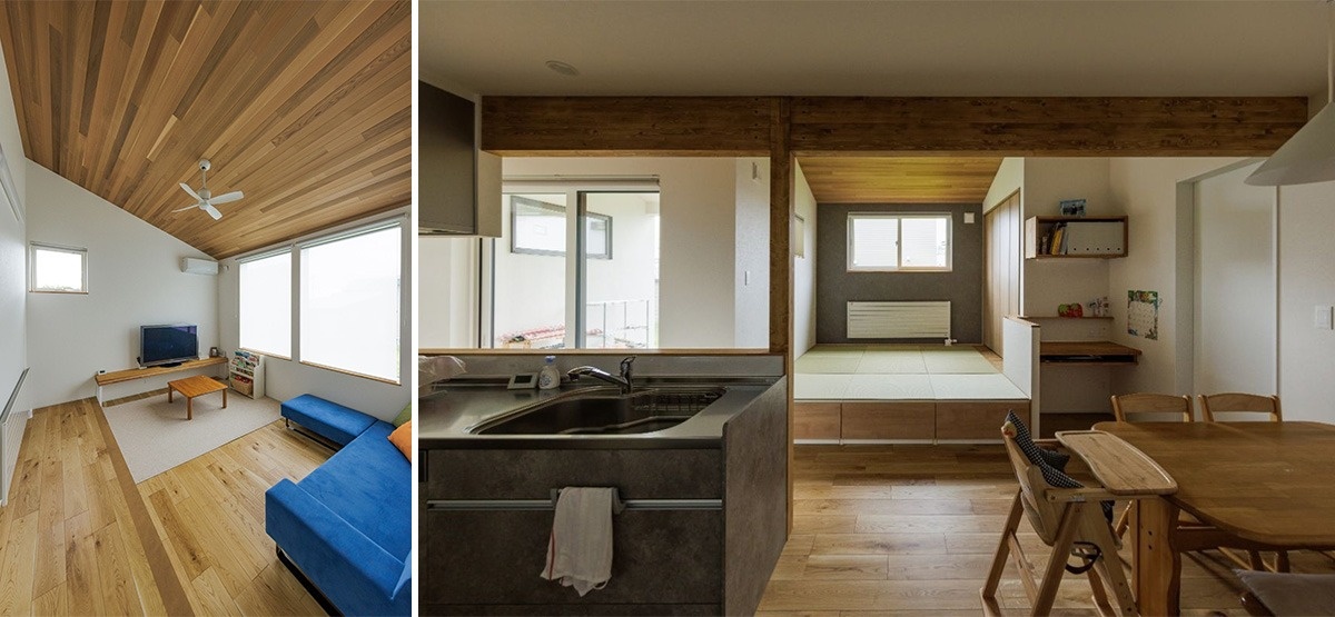 西海岸のテイストを感じる勾配天井 秋田県大仙市S邸/村上工務店