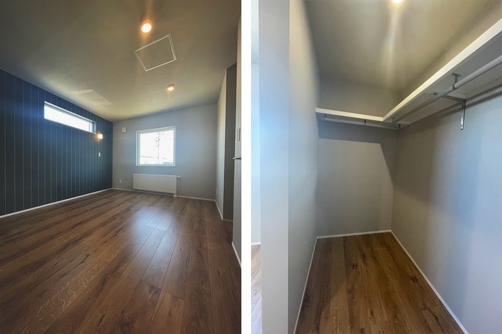 2階は3帖大のウォークインクローゼットの付いた主寝室のほか、個室が2室、トイレも備えています。