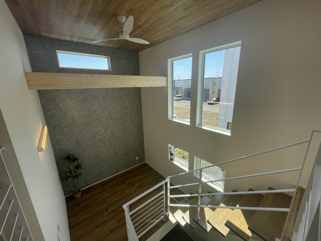 昨年創業50周年を迎えたマルトモホーム(丸友サービス株式会社・札幌市東区本町)は、北国の暮らしに対応した住宅性能と、暮らしやすく快適な設計に遊び心をプラスしたデザインに定評のある住宅会社です。その代名詞ともいえるのが吹き抜けやスキップフロアの提案。吹き抜けの明るい空間や、1階から2階へつながる階段途中にスキップフロアを設けた間取りは、子育て世代にも人気のプランです。